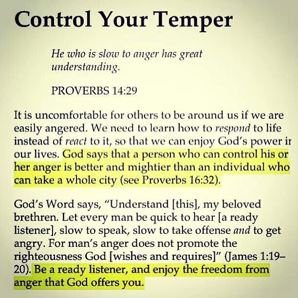 Proverbs 14:29 - "He that is slow to wrath is of great understanding: but he that is hasty of spirit exalteth folly."